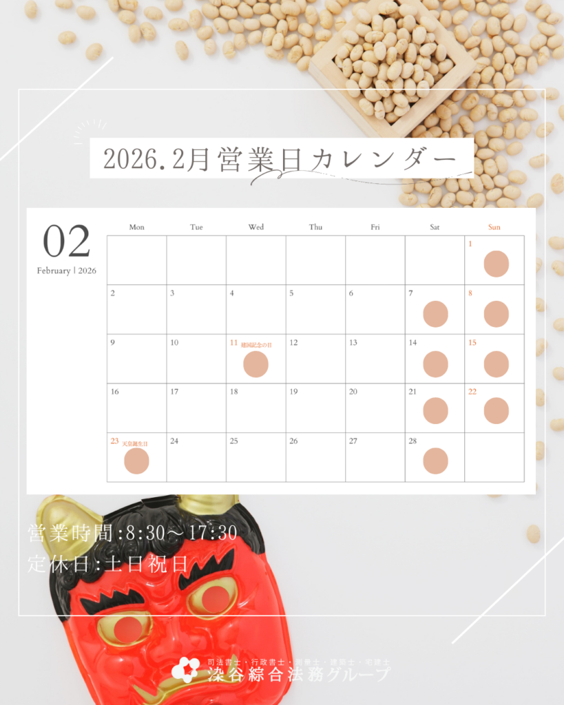 2026年|2月営業日|測量士 染谷綜合法務事務所